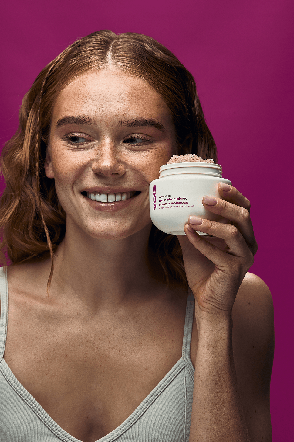 Нежный солевой скраб с ароматом фруктового сада и нотами полевых цветов подходит для всех типов кожи. Он деликатно удаляет ороговевшие клетки, стимулирует микроциркуляцию, придает коже ощущение мягкости и тонуса, улучшая ее общее состояние, и расслабляет уже после первого применения. В составе: морская соль для мягкого механического отшелушивания, масла белых цветов и виноградных косточек, которые питают, увлажняют и восстанавливают кожу.