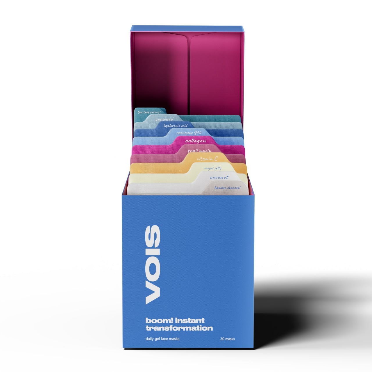 30 масок — 10 эффектов — максимум пользы. Большой универсальный набор масок, предлагающий новое решение каждый день: увлажнение, питание, очищение, сияние, восстановление, лифтинг и многое другое. В каждой маске есть концентрированная сыворотка с активными компонентами, подобранными под конкретную задачу: от гиалуроновой кислоты и витамина C до бамбукового угля, муцина улитки и морских водорослей. Удобно брать с собой в отпуск, использовать по настроению или под состояние кожи.