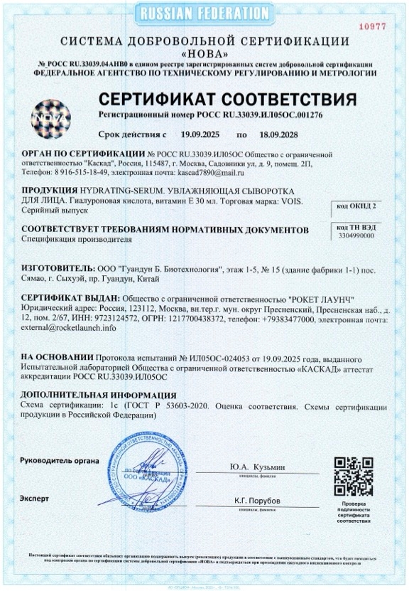 Помимо этого, все наши производства имеют следующие сертификаты: ISO 22716, FDA, COA и ISO 9001.