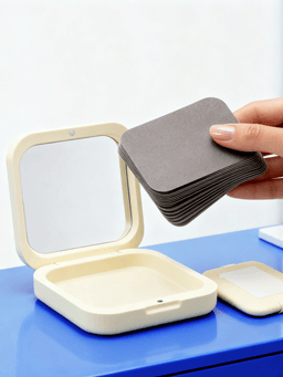 Аккуратно прижми салфетку к блестящим участкам кожи и слегка промокни. Не три кожу, чтобы не смазать макияж. После использования удали салфетку с клейкого спонжа.
